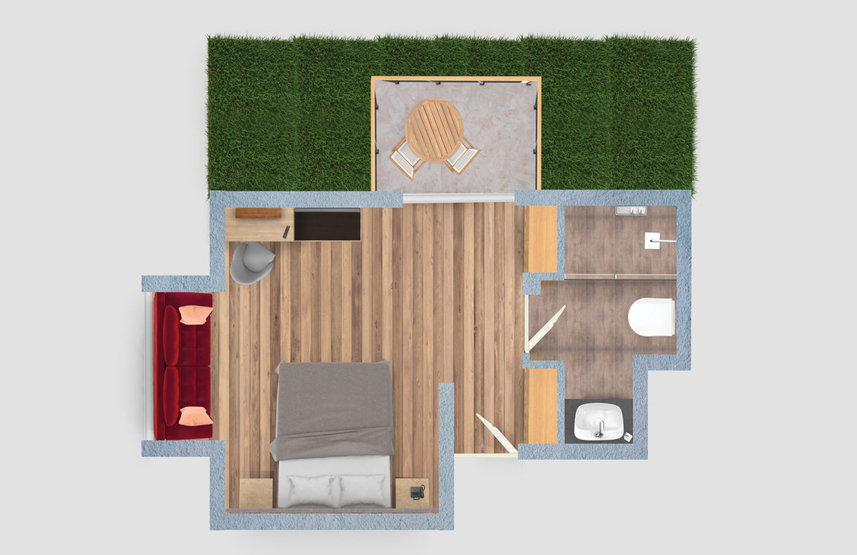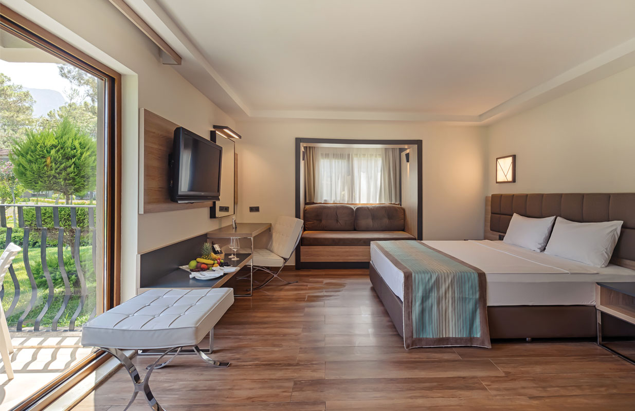 Doğa ile iç içe olan bu tip odalarımız iki katlı villalarda, birbirlerinden tamamen ayrı ve bahçeden girişlidir.