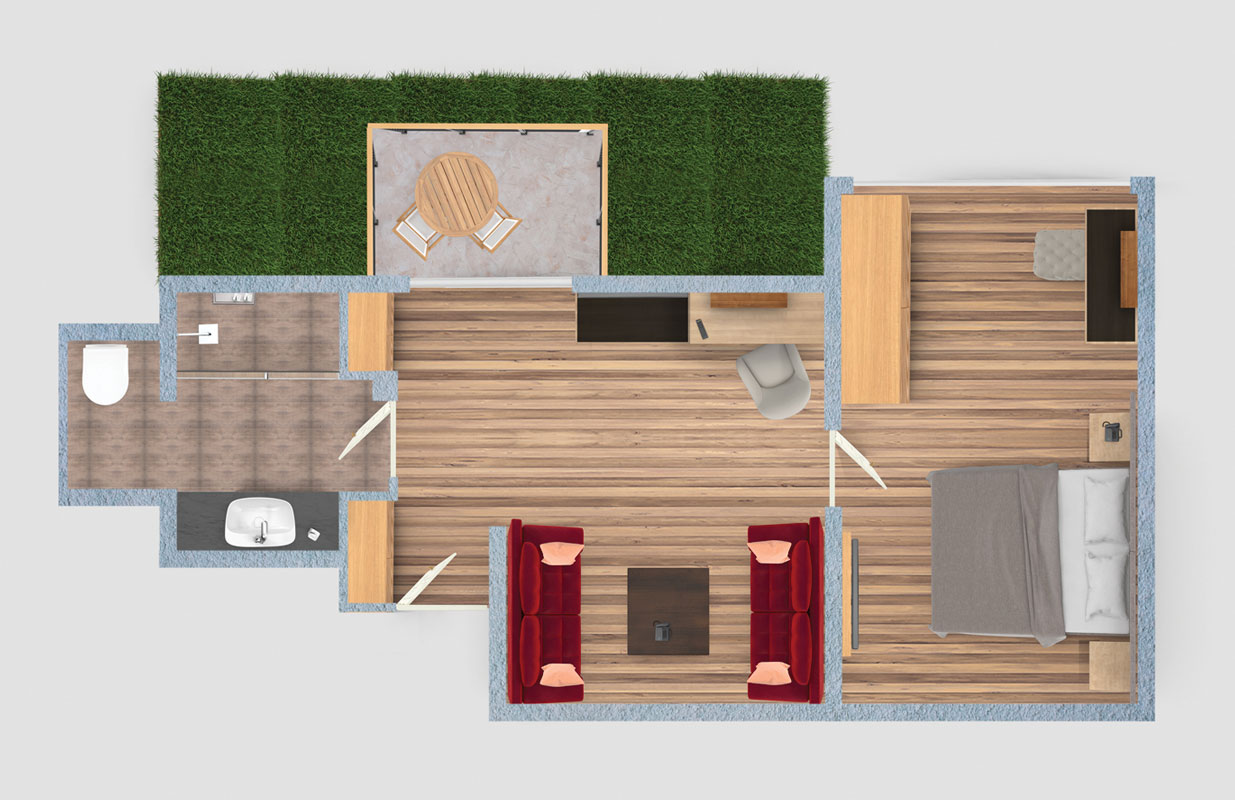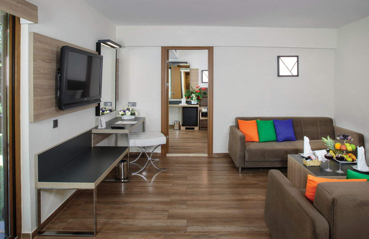Doğa ile iç içe olan bu tip odalarımız, iki katlı villalarda, birbirinden tamamen ayrı ve bahçeden girişlidir. Suit odalarımız iki ayrı bölümden oluşmaktadır.